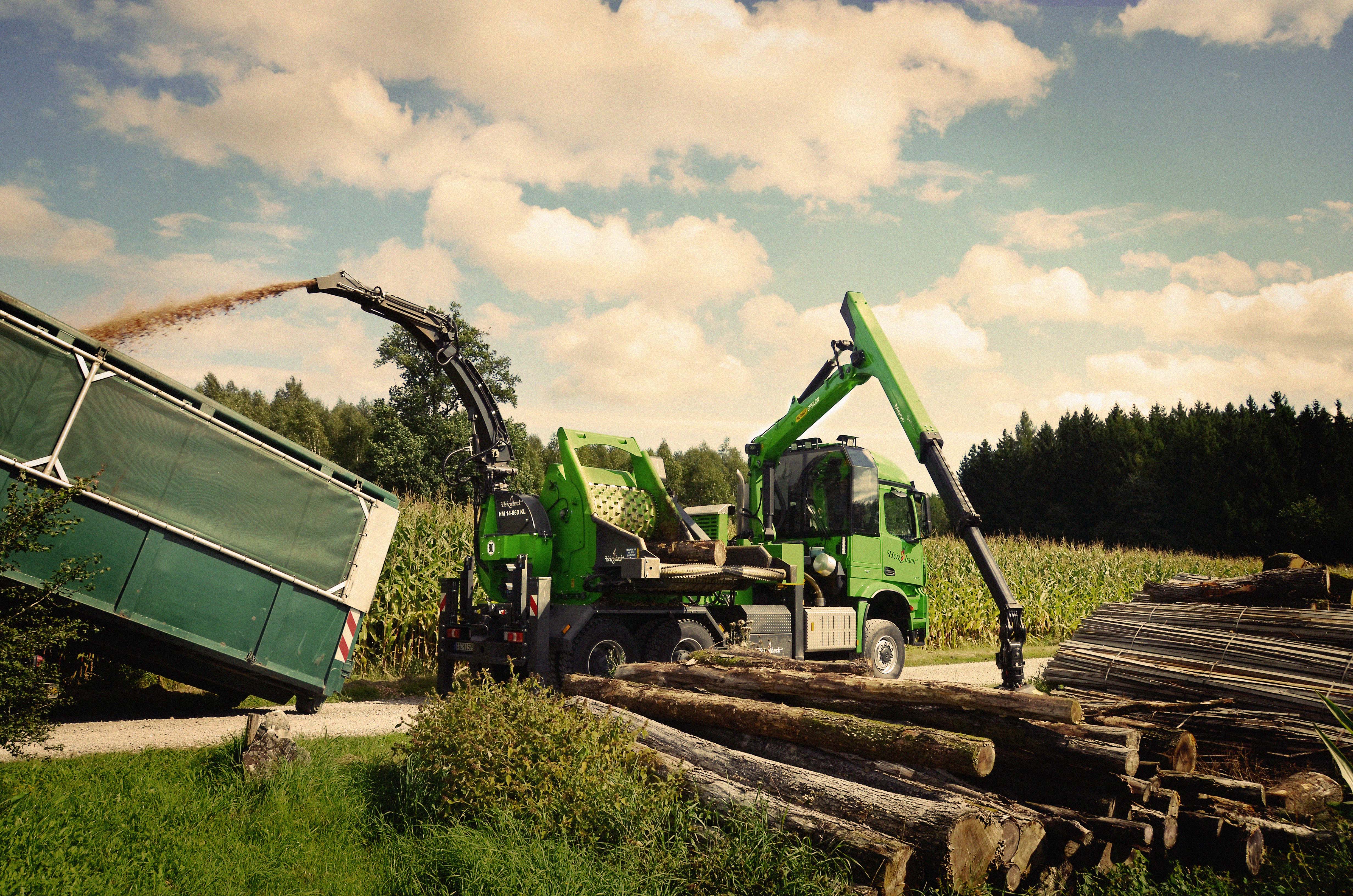 Мобильный (на автомобильном шасси) измельчительный агрегат барабанно-роторного типа с приводом от коробки отбора мощности любого Российского автомобиля-носителя с достаточной мощностью двигателя не менее Оборудован краном с лесозахватом для подачи измельчаемого материала. Производительность до 120 м3 щепы в час. Применяется для измельчения крупных деревьев до 800мм, порубочных остатков, отходов деревопереработки. Это сверхпроизводительная лесная машина для измельчения древесины в промышленных объёмах.
