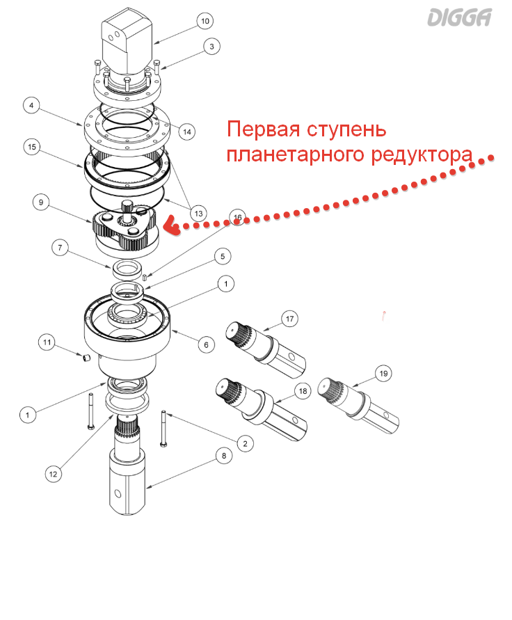 GB-001331 Первая ступень редуктора DIGGA